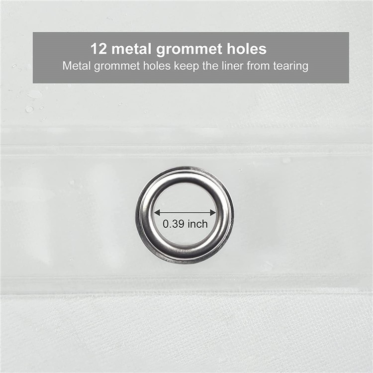 CONVENIENTE Y DURADERO: tres imanes resistentes en la parte inferior mantienencortina de baño transparenteen su lugar y lejos de su cuerpo. Cuenta con 12 ojales de metal a prueba de herrumbre y un cabezal reforzado que evita roturas y garantiza una funcionalidad a largo plazo.